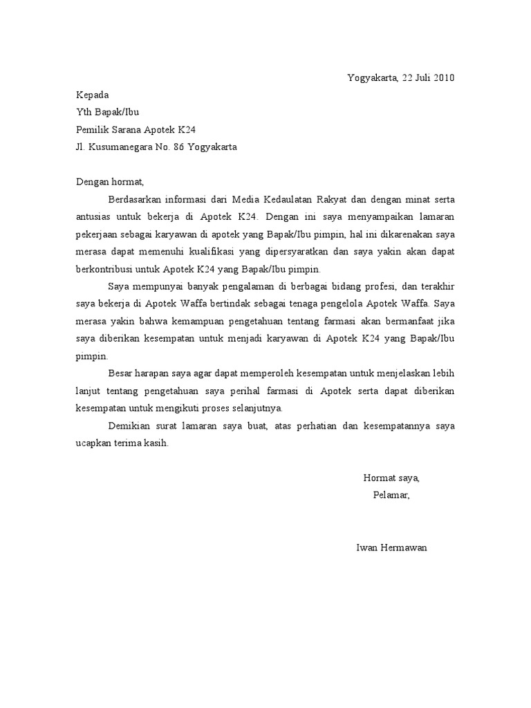 5 Contoh Surat Lamaran Kerja Apotek Terbaik. Contoh surat lamaran kerja apotek. Check spelling or type a new query. We did not find results for: Maybe you would like to learn more about one of these?